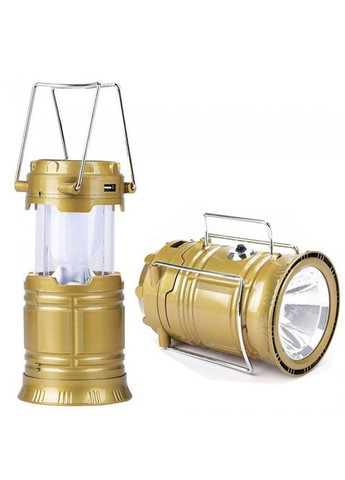 Кемпинговая LED лампа SB 9688 c фонариком и солнечной панелью Многофункциональный кемпинговый фонарь для использования в походных условиях и не только. Это светодиодная лампа, с удобной ручкой, для переноски или подвешивания в палатке, над столом, над поляной, и т.д. Идеальный вариант автономного освещения для походов, «дикого» отдыха в палатках, рыбалки, пикников, может использоваться и на даче, и в частном доме, и даже в квартире в качестве резервного источника света. Кроме того от устройства можно заряжать мобильный телефон или другие устройства. На фонаре есть солнечная панель которая позволяет заряжать устройство от солнечных лучей. Характеристики: Тип - кемпинговый фонарь Тип питания - встроенный аккумулятор Фонарь с зуммом Тип лампочки - светодиодная (led) Тип заряда - солнечные батареи Режимы работы - максимальный Материал корпуса - пластик Особенности фонаря - влагостойкий, есть 2 диода и соответственно 2 типа свечения - белый и желтый. Дальность свечение 500м Имеет солнечную батарею, встроенный аккумулятор. Есть возможность ставить на триногу Возможность перезарядки более 100 раз Есть порт USB для зарядки других устройств например мобильного телефона, Ваш походный Power Bank Цвет: Золотая Диаметр фонаря - 60 мм, длина - 170 мм Комплектация: - лампа - шнур - упаковка