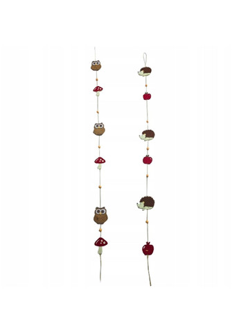 Набор подвесных украшений для декора тематических уголков, или детского творчества. На нитке подвешены фетровые совы, грибочки, ежики, пластиковые бусинки. В наборе 2 шт размером примерно 100x8 см каждый. Производитель Германия.