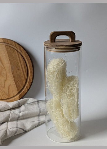 Материал: стекло, дерево Объем: 1800 мл Высота с ручкой: 29 см Высота без крышки: 25,5 см Диаметр: 10 см Не подходит для хранения спагетти, не хватает 1 см для того, чтобы крышка плотно закрылась.