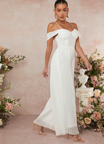 Изящный комбинезон с открытыми плечами и завышенной талией. Модель имеет ремешок-спагетти, застежку-молнию и открытые акценты на плечах. Обычная посадка, без растяжек.