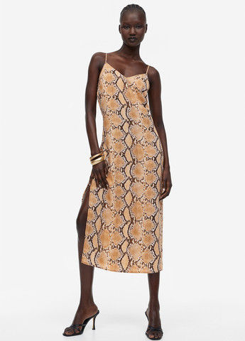 Платье – комбинация миди. V-образный вырез, регулируемые бретельки-спагетти и высокий разрез с одной стороны. Частично на подкладке.
