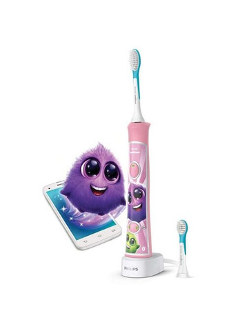 Простой и интересный способ формирования здоровых привычек Увлекательный процесс для обучения правильной технике чистки зубов. Зубная щетка Philips Sonicare For Kids с поддержкой Bluetooth подключается к специальному приложению, которое в игровой форме учит детей правильно чистить зубы. Это увлекательный и веселый процесс, который поможет детям выработать привычку по уходу за полостью рта. Интерактивная программа: ваш ребенок полюбит чистить зубы Приложение Philips Sonicare For Kids синхронизируется с детской звуковой зубной щеткой и в игровой форме учит детей правильному уходу за полостью рта. Наставник побуждает ребенка чистить зубы более эффективно и в течение более длительного времени. Каждый сеанс начинается с понятных видеоинструкций. Дети учатся техникам правильной чистки зубов, а приложение отслеживает их прогресс. Это веселый и познавательный процесс, который понравится вашему ребенку, а вы сможете в любой момент проверить, насколько хорошо он справляется с задачей. 98% пользователей отметили, что дети чистят зубы дольше, эффективнее и с большим удовольствием. Благодаря приложению и зубной щетке Philips Sonicare For Kids дети учатся самостоятельно чистить зубы. Программа синхронизирует данные с детской звуковой зубной щеткой через Bluetooth, обучая правильной технике чистки и записывая данные каждого сеанса. Дети могут следить за тем, как хорошо они чистят зубы, а также получать награды за отличный результат. Это эффективное учебное приложение: 98% родителей, участвовавших в опросе, подтвердили, что дети дольше и лучше чистят зубы. Веселый и увлекательный процесс, в ходе которого дети формируют полезные привычки по уходу за полостью рта. Интересные награды за успешные сеансы чистки Приложение и зубная щетка Philips Sonicare For Kids превратят чистку зубов в веселый и увлекательный процесс. Главный персонаж программы – Спаркли, который очень любит чистые зубки. Дети ухаживают за Спаркли и получают инструкции от наставника, побуждающие их к более долгой и эффективной чистке. После каждого успешного сеанса чистки в Спаркле поднимается настроение, а ребенок получает награду. Ребенок может использовать специальные аксессуары для своего Спаркли или выигрывать для него еду – ведь Спаркли очень любит полезные продукты. Родители могут самостоятельно устанавливать в приложении награды своего ребенка. Следите за временем чистки, не входя в приложение При подключении зубной щетки Philips Sonicare For Kids с поддержкой Bluetooth к приложению функция Quadpacer отслеживает сеансы чистки в режиме реального времени. Фиксируется информация о начале сеанса, перерыве и времени завершения процедуры. С помощью функции памяти и отсчета времени можно сохранять информацию о чистке (до 20 сеансов), даже если приложение не использовалось. При дальнейшем включении щетки вместе с приложением информация об этих сеансах будет синхронизирована с календарем приложения, а ребенок сможет получить награды за успешные сеансы и следить за своим прогрессом. KidTimer и KidPacer для обучения правильной чистке зубов Чтобы содействовать тщательной чистке зубов, электрическая зубная щетка Philips Sonicare For Kids с поддержкой Bluetooth подключается к программе и помогает ребенку постепенно увеличивать продолжительность чистки. Таким образом достигается рекомендованное стоматологами время чистки – 2 минуты. При использовании п