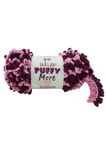 Фантазийная пряжа Alize Puffy More – плюшевая цветная детская пряжа для вязания руками без спиц. Alize Puffy More - пряжа из семейства Puffy с двусторонними петлями и пиксельными узорами. В результате получится отличный двухсторонний пиксельный рисунок по Вашему вкусу, который появляется одновременно с обеих сторон вязаного изделия.