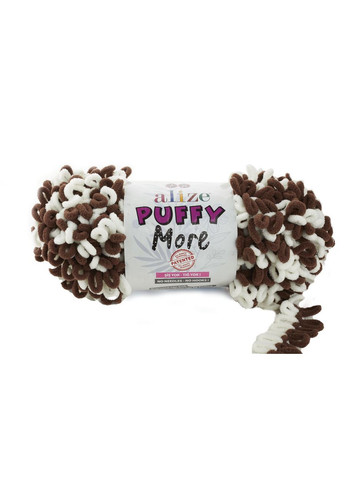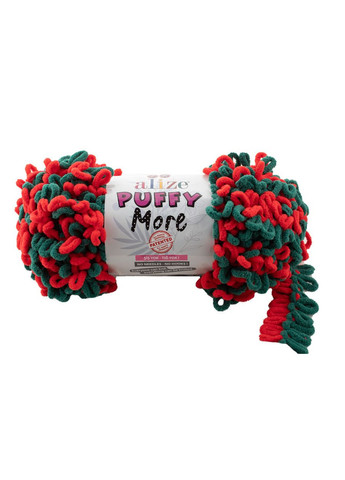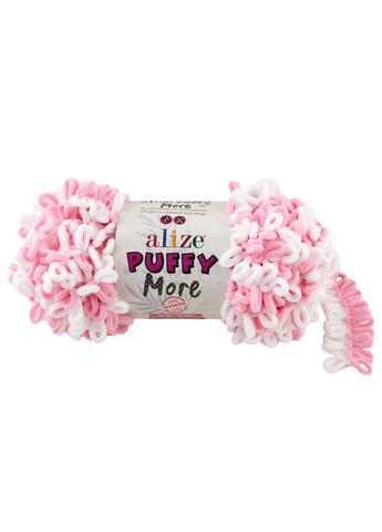 Фантазийная пряжа Alize Puffy More – плюшевая цветная детская пряжа для вязания руками без спиц. Alize Puffy More - пряжа из семейства Puffy с двусторонними петлями и пиксельными узорами. В результате получится отличный двухсторонний пиксельный рисунок по Вашему вкусу, который появляется одновременно с обеих сторон вязаного изделия.