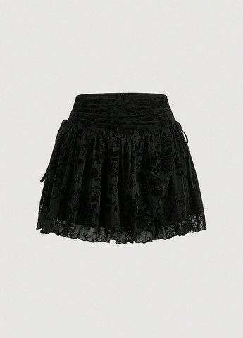 Цвет Черный / Фасон Клеш / Высота посадки Высокая талия / Длина изделия Мини / Материал Полиэстер, Трикотаж