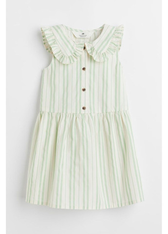 Платье-миди без рукавов из хлопкового поплина. Отложной воротник с рюшами, пуговицы спереди, присборенная талия и расклешонная юбка. Без подкладки. В изделии возможно повреждение бирки.
