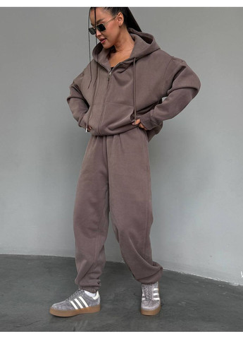 Женский повседневный костюм из тренитки на флисе – идеальный выбор для комфорта и уюта в прохладную погоду. Комплект состоит из джогеров на высокой посадке с мягкой резинкой, которые удобно облегают талию и дарят свободу движений, и кофты свободного кроя на молнии с длинным рукавом и капюшоном. Накладные карманы придают практичности, не нарушая современный спортивно-кежуальный вид. Мягкий флис обеспечивает тепло и приятные тактильные ощущения, а свободный крой кофты гармонично сочетается с джогерами, создавая стильный и сбалансированный силуэт. Этот костюм станет универсальным вариантом для ежедневной носки, прогулок и отдыха, сочетая комфорт, практичность и современный дизайн.