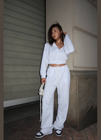 Базовый повседневный костюм, брюки – джогеры на высокой должности с карманами, укороченная худые – спечка с капюшоном.
