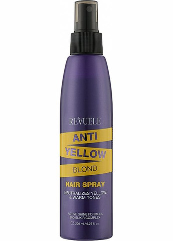 Спрей для волос бренда Revuele, дополненный антижелтым эффектом, поможет усовершенствовать полученный оттенок или лишить натуральный цвет прядей мелких несовершенств, спровоцированных агрессией внешних факторов. Anti Yellow Blond Hair Spray повышает насыщенность пигмента, усиливает природное сияние волос, одновременно обеспечивая им совершенный уход. Средство легкой консистенции содержит растительный биоэлексир, способствующий питанию, увлажнению, восстановлению и укреплению прядей от корней к кончикам. Функциональный бьюти-продукт возвращает им гладкость, упругость, шелковистость, значительно облегчает расчесывание и укладку, ведь справляется с пористостью, пушистостью, скоплениями статики. К тому же, универсальное средство очень простое и комфортное в применении — оно не требует смывания и повторного нанесения в течение дня. Особенности Anti Yellow Blond Hair Spray бренда Revuele: - эффективно выравнивает цвет независимо от его происхождения; - совместим с окрашенными и натуральными прядями; - делает их более послушными, податливыми и шелковистыми; - значительно облегчает расчесывание и укладку; от негативного воздействия внешних факторов; - содержит тонизирующий фиолетовый пигмент; - обеспечивает питательное и увлажняющее действия; - предотвращает возникновение признаков дегидратации; - активно борется с тусклостью, сухостью, ломкостью.