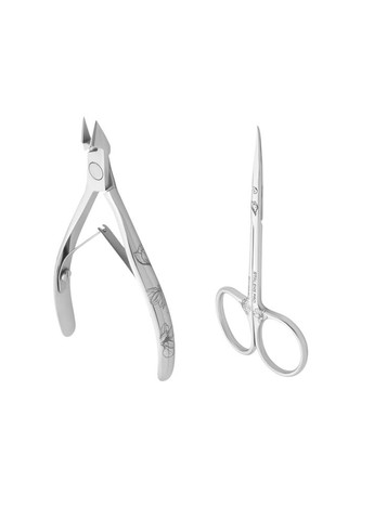 Кусочки STALEKS EXCLUSIVE профессиональные для кожи 20 8 мм (NX-20-8m) "Magnolia" Ножницы STALEKS EXCLUSIVE профессиональные для кутикулы 20 TYPE 1 (SX-20/1) Набор Staleks EXCLUSIVE — это сочетание максимальной точности и изысканного дизайна. Комплект создан для мастеров, выполняющих ювелирный обрезной или комбинированный маникюр и стремящихся идеально чистого, ровного среза тонкой кутикулы. Ювелирный срез: Кусачки с рабочей частью 8 мм идеальны для филигранной работы и минимизируют риск повреждения кожи. Премиум Дизайн: Уникальная гравировка "Магнолия" на кусачках подчеркивает высокий класс мастера. Точная Коррекция: Ножницы Type 1 обеспечивают абсолютно чистую линию среза благодаря тонким изогнутым лезвиям. Ручная заточка: Обеспечивает длительную остроту и плавный, невесомый ход. Медицинская Сталь: Устойчивость к коррозии и всем видам профессиональной стерилизации. Набор инструментов Staleks EXCLUSIVE "Магнолия" — это элитный комплект, объединяющий два ключевых инструмента премиум-класса. Они изготовлены из высоколегированной медицинской нержавеющей стали, что гарантирует их долговечность и гигиеничность. Кусочки для кожи (8 мм, "Магнолия"): Артикул NX-20-8m. Кусачки с идеальной для точной работы длиной режущей части 8 мм. Они обеспечивают чистый, ровный срез даже нежнейшей кутикулы. Гравировка на ручках обеспечивает нескользящий и надежный хват. Ножницы для кутикулы (Type 1): Артикул SX-20/1. Это инструмент для ювелирного среза кутикулы. Ножницы Type 1 имеют тонкие, острые, изогнутые лезвия, точно повторяющие форму кутикулы, обеспечивая идеально чистую линию среза. Оба инструмента заточены мастерами Staleks вручную под микроскопом, что гарантирует безупречную остроту и высокое качество.