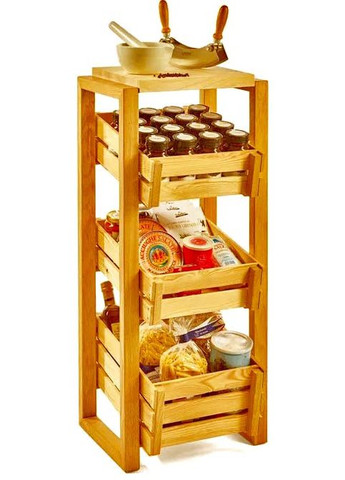 Деревянный стеллаж для хранения овощей и фруктов. Правильное хранение овощей и фруктов позволяет продлить их свежесть и сэкономить деньги при следующей покупке продуктов. Но возвращаясь с рынка или супермаркета, мы просто загружаем всё добро из пакетов в холодильник, не подозревая, что такой подход имеет много недостатков. Во-первых, не все дары природы должны храниться в холодильнике. Для сохранения некоторых из них, например помидоров и картофеля, низкие температуры вообще нежелательны. Во-вторых, многие фрукты и овощи не рекомендуется содержать вместе. Продукты с коротким сроком годности быстро перезревают и начинают заражать окружающих. Наконец, хранение овощей в ящике холодильника часто приводит к тому, что мы просто забываем об отдельных плодах, погребённых под пучками зелени или капусты. Благодаря нашим лоткам-органайзерам, вы не только сохраните свежесть овощей и фруктов на более длительный срок, но и внесёте особую нотку стиля в интерьер вашей кухни. Размеры наружные: высота - 77см, ширина - 41см, глубина - 31см. Тип установки: напольный. Материал: дерево. Покрытие: акриловый лак. Изделие ручной работы и выполнено исключительно из натуральных, экологически чистых материалов.
