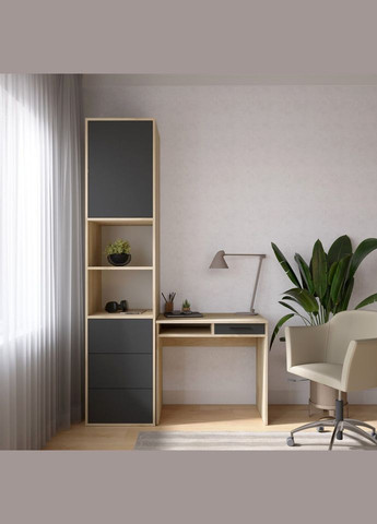 Размеры стеллажа Shelf: Ширина – 500мм; Высота – 2200мм; Глубина – 500мм. Материал – ДСП толщиной 18мм (цвет корпуса дуб Кастелло медовый с текстурой глубокого тиснения, цвет фасада – антрацит). Дуб Кастелло Медовый олицетворяет очарование хорошо знакомого и любимого классического декора дуба в новом, современном виде. Теплые медовые тона, нежные эллиптические формы и зернистость декора делают универсальным для использования в классических и современных интерьерах. Антрацит находится на черном конце серой гаммы. Он является доминирующим и имеет металлический блеск, что делает его похожим на черный, но в то же время он переходит в серый. Этот прочный нейтральный декор не только создает контраст, но и прекрасно выглядит в сочетании с воспроизведением текстур древесины и другими материалами. Кромка REHAU толщиной 0.8 мм гармонично соответствует оттенкам ДСП, а текстура создает единство с поверхностью материала.