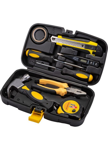 Набор инструмента "Техник" 8 элементов MASTERTOOL Предназначен для использования в мастерских и при домашних работах. Комплектующие элементы позволяют использовать набор при выполнении различных видов работ. Поставляется в пластиковом кейсе. Набор инструмента Mastertool содержит в себе самые нужные элементы для ремонта автомобиля в своем гараже, а также при выполнении любых работ по дому, не заменим в работе с сантехникой, мото-, вело- техникой. Особенности: удачная комплектация компактный и многофункциональный не займет много места в багажнике или в стеллаже инструментальная сталь размер 0,255x0,145x0,07 м вес 1,208 кг Набор включает в себя: плоскогубцы 160 мм тестер с ЖК-дисплеем молоток 200 гр отвертка PH2*100 мм, отвертка SL6*100 мм измерительная рулетка 3м*13 мм нож пластиковый 18 мм изоляционная лента 5м*16 мм пластиковый кейс MASTERTOOL - один из самых известных украинских брендов инструмента. Деятельность компании стартовала с 1991 года и на сегодняшний момент в любом регионе Украины можно получить инструмент и оборудование для ремонтно-строительных работ этой марки. Отличительная положительная черта инструмента MASTERTOOL - соотношение цена-качество. При достойном качестве материала изготовления и удобной комплектации, инструмент сопровождает небольшая стоимость.