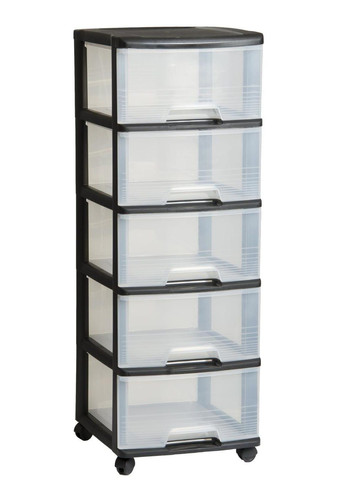 Комод на колесах пластиковый на 5 ящиков Curver (06770) Объем: 5 x 20 л Размеры: 390 x 370 x 1000 мм Материал: пластик Профессиональный комод-органайзер с 5 выдвижными лотками Curver изготовлен из высококачественного пластика, устойчив к перепаду. Пластмассовый комод можно использовать практически в любом помещении, в частности в не отапливаемом или помещении с высокой влажностью, например дача, гараж, ванная комната. Легкий и компактный, удобный и простой в использовании. Легко вытирается влажной тряпкой от пыли и грязи. Эргономичный и современный дизайн станет отличным дополнением интерьера дома или офиса. Прозрачные и выдвижные ящики литые, изготовленные из крепкого и безопасного пластика, поэтому такие комоды станут отличным решением для хранения игрушек в детской комнате. Пластиковый комод помогает поддерживать порядок в доме, незаменимый в организации свободного пространства квартиры, комнаты, жилых и не жилых помещений. Удобный и компактный, отлично поместится в любой ванной. Мобильный стеллаж с 5 ящиками по 20 литров представляет собой решение, отлично подходящее как дома, так и в общественных местах, например, парикмахерских, салон красоты. Такое изделие станет хорошим помощником для домашних дел, в нем можно хранить как белье или полотенца, принадлежности для ванной, так и одежду или детские игрушки. Основой конструкции является стойка на колесах, изготовленная из высококачественного пластика.