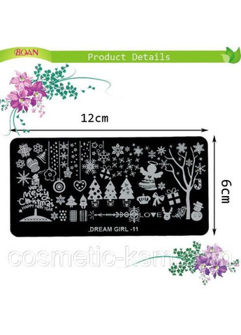 Пластина для стемпинга XY-08 с новогодней тематикой Стемпинг — это идеальная технология нанесения рисунка на ногти, ведь она не требует особых навыков и знаний. Все, что вам нужно — пластина из металла и удобный штамп. С их помощью вы сможете переносить на дизайн маникюра необычные орнаменты, интересные рисунки и утонченные узоры на разную тематику. Пластина обладает оптимальной глубиной гравировки, благодаря чему изображения на покрытии будут выглядеть органично, максимально натурально и красиво. С помощью трафарета вы без труда справитесь с нанесением искусного рисунка, который вручную воспроизвести достаточно нелегко. К тому же стемпинг используют не только в создании маникюра, им украшают бижутерию, часы, мобильные телефоны и других аксессуары, которым вы желаете придать неповторимый стиль. Преимущество стемпинга в том, что не взирая на простоту в использовании, ваш личный маникюр будет выглядеть не хуже салонного. Разнообразие рисунков позволяет подобрать наиболее приглянувшийся для вас штамп по форме ногтей, цвету и размеру. "