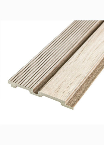 Стеновые рейки WPC Описание: Стеновые рейки WPC – строительный материал для внутренней отделки, имитирующий натуральную древесину. Фактура: гладкая, имитация деревянной рейки Рейки состоят из следующих слоев: Полимерный слой, защищает от потертостей и мелких механических повреждений, обеспечивает долговечность использования, а УФ защита помогает предотвратить выгорание, сохраняя цвет декоративного слоя насыщенным, за счет чего рейка долго имеет свой первоначальный эстетический вид. Декоративный слой: пленка с цветной печатью высокого разрешения, которая полностью имитирует фактуру природных материалов, благодаря четкому и детализированному изображению. Основной слой WPC: представляет собой композитный материал, который объединяет в себе древесные волокна (или стружку) с полимерными материалами, что обеспечивает материалу прочность, устойчивость к влаге и стойкость к воздействию внешней среды. Температурный режим: от -50º до +80º С Применение: внутренние отделочные работы: декорирование стен во всех видах жилых помещений (кухня, гостиная, детская или спальня, входная группа) и коммерческих помещений (офисные помещения, зоны рецепций, магазины, салоны красоты или фитнес-центры), декорирование мебели, дверей и других ровных поверхностей. Свойства и преимущества материала: Устойчивость к влаге: материал WPC обладает высокой устойчивостью к воздействию влаги, не разбухает и не деформируются. Устойчивость к гниению и насекомым: в отличие от древесины, WPC не подвержен гниению и не привлекает насекомых. Стойкость к воздействию ультрафиолета: стеновые панели WPC сохраняют свой цвет и структуру под воздействием ультрафиолетового излучения. Привлекательный внешний вид: декоративный слой имитирует натуральное дерево, это позволяет создавать стильные и эстетичные интерьеры, снижая при этом использование чистой древесины. Простота обслуживания: стеновые панели WPC обычно не требуют сложного ухода. Они не требуют покраски, обработки антисептиками и формальдегидами, сохраняют свой внешний вид на протяжении долгого времени. Расчет нужного количества материала: Измерьте длину и высоту оклеиваемой поверхности. Умножьте длину на высоту каждой поверхности в метрах и составьте полученные результаты, чтобы получить площадь.К примеру, после измерений вы получили:Длина стены 3,2 м.Высота стены 2,7 м.3,2*2,7 = 8,64 м ² Получившуюся площадь необходимо разделить на площадь одной рейки (152*3000= 0,456 м²) и округлить в большую сторону:8,64/0,456=18,95 округляем до 19.В процессе монтажа могут возникнуть отходы, связанные с порезкой реек, поэтому рекомендуется добавить в расчет запасные 1-2 шт. Инструкция по монтажу: Подготовьте поверхность, на которую будут крепиться рейки. Их можно устанавливать на оштукатуренные стены, гипсокартонные плиты и древесные материалы. Если стена оклеена обоями, рекомендуем их снять. Для порезки рейки используйте циркулярную пилу или лобзик. Прикрепить рейку к нужной поверхности можно с помощью монтажного клея, желательно на полиуретановой или силиконовой основе. Пользуясь инструкцией, нанести клей на заднюю часть рейки, после чего установить на нужную поверхность. Рейки можно собирать вертикально или горизонтально. Помимо монтажного клея, можно использовать строительный степлер, чтобы закрепить их на стене. Прикреплять скобы необх