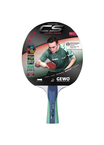 Ракетка для настольного тенниса Gewo CS Energy Power - это отличная ракетка для соревнований для амбициозного любителя или клубного игрока, которая должна передавать всю мощность удара с максимально возможной скоростью. Разработана в сотрудничестве с многократным чемпионом Европы и олимпийским призером Кристианом Зюсом. Отзыв Кристиана Зюса: ''Gewo CS Energy Power разработана для максимального увеличения силы удара, и команда GEWO проделала большую работу, чтобы подобрать превосходную комбинацию сортов шпона''. Бренд GEWO успешно вошел в мир настольного тенниса в 1956 году начав производство теннисных столов. Потребовалось около 10 лет, чтобы стать ведущим производителем столов для настольного тенниса в Европе. В 1991 году компания GEWO имела «второе рождение», когда Франк Кошник (Frank Koschnick) и Вольфганг Сонс (Wolfgang Sohns) возглавили компанию, сделав упор на исключительное качество продукции. Они вывели GEWO в число крупнейших теннисных брендов Германии и предложили весь ассортимент товаров для настольного тенниса высочайшего качества. Рекомендуемый уровень подготовки игрока: средний уровень (предполагает владение базовыми и основными важными навыками), продвинутый уровень (мощность и скорость являются основным направлением на этом уровне) Стандарты, сертификаты : сертифицирован ITTF (Международной федерацией настольного тенниса) Стиль игры: Универсальный (AR+/OF-) Основа ракетки: склеенные по особой технологии слои шпона придают универсальной ракетке высокий уровень устойчивости и таким образом хороший контроль над игрой Накладка: губка 1,8 мм, резина GEWO Powerspeed это резина абсолютной мощности, которая нацелена на мощность и скорость. Эластичная и липкая резиновая поверхность позволяет совершать быстрые топспины с большим вращением и скоростью. Вы будете в полном восторге! Скорость: 85/100 Контроль: 80/100 Вращение: 90/100 Форма ручки: Коническая (FL, Flared) Вес : 200 г Особенности: HiDeTech - ракетка разработана на основе результатов последних исследований. Select Vineer - для основы ракетки используется отобранная вручную комбинация шпона из разных пород дерева для получения заданных характеристик ракетки. Anti Vibration - используется комбинация различного шпона для избежания высокой вибрации Sensitise Grip - ракетка с эргономичным контуром ручки для максимального комфорта и стабильного захвата. Рекомендация от Gewo: для длительного удовольствия от игры на профессиональном уровне с постоянной скоростью и вращением мы рекомендуем чистить ракетку после каждого использования.