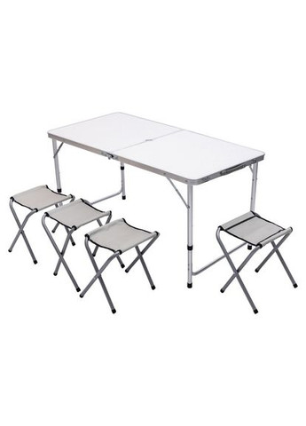 Раскладной комплект мебели с алюминиевым каркасом подходит для использования на природе, даче или в кемпинге. Складная конструкция позволяет удобно трансформировать все элементы в один чемодан для транспортировки и хранения. В сложенном виде стол и стулья компактно фиксируются, занимая минимум места. Каркас выполнен из лёгкого и надёжного металла, что обеспечивает прочность и долговечность при ежедневном использовании. Поверхности из алюминия и МДФ износостойкие и устойчивы к внешним воздействиям. Высота стола регулируется — 75, 65 или 55 см, что позволяет настроить удобное положение под разные условия. В центре столешницы предусмотрено отверстие для установки зонта — это обеспечивает защиту от солнца или дождя. Характеристики кемпингового набора для отдыха: Размеры стола в разложенном виде: 120 x 70 x 75 / 65 / 55 см; Размеры стола в сложенном виде: 60 x 70 x 10 см; Цвет: белый; Материал столешницы: МДФ; Материал каркаса (опор): алюминиевая трубка; Размер стульев: 28 x 26 x 39 см; Материал каркаса стульев: алюминий; Материал сидений стульев: алюминий. Назначение туристического набора: для кемпинга, пикников, рыбалки; как мобильный вариант для дачи или сада; для сезонных мероприятий на природе; для удобной транспортировки и хранения. Вся конструкция легко складывается и раскладывается без дополнительных инструментов. Набор станет практичным решением для тех, кто ищет компактную, функциональную мебель для отдыха на открытом воздухе.