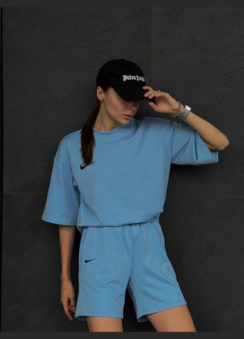 Цвет Голубой / Фасон С шортами / Стиль Спортивный, Повседневный, Кэжуал / Узор Логотип / Материал Двунитка