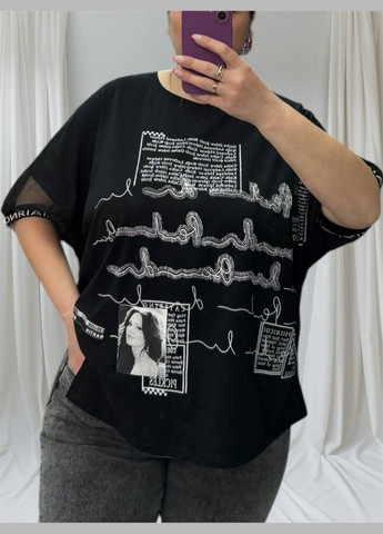 ❗️❗️❗️ПЕРЕД ЗАКАЗОМ ОЗНАКОМТЕСЬ С ЗАМЕРами НИЖЕ❗️❗️❗️ Super батал !!! Oversized !!! Размер-52-58 (Универсал) Замеры: ОГ (Обхват Грудей): 152 см Длина: 72 см Эта стильная и комфортная женская футболка выполнена из 100% высококачественного коттона, что обеспечивает максимальный комфорт и приятные тактильные ощущения. Натуральный материал отлично пропускает воздух, идеально подходит для повседневного использования. Футболка представлена в модном oversized стиле, гарантирующем свободную и непринужденную посадку, подчеркивая актуальные тенденции. Размер Super батал обеспечивает комфортную посадку для пышных форм, придавая образу стильный и современный вид. Особенности дизайна: Оригинальные рукава: Футболка имеет короткие рукава, частично выполненные из прозрачной сетчатой ткани, декорированной текстильной лентой с надписью. Это создает интересный акцент и придает утонченность. Асимметричный крой Низ футболки имеет асимметричный крой с боковыми разрезами, что придает динамичности и оригинальности силуэту. Декоративный принт: Футболка украшена стильным принтом, а также декоративными элементами из стразов, что придает изделию блеска и индивидуальности. Эта футболка является идеальным выбором для создания уникальных и комфортных образов каждый день, сочетая в себе модный дизайн и практичность.