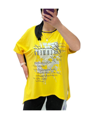 Цвет Желтый / Материал Хлопок / Фасон С коротким рукавом / Узор Надпись / Стиль Повседневный