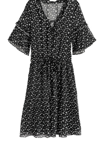 Длинное платье из шифона с лифом из кружева. Широкий вырез горловины и короткие цельнокроеные рукава. Отрезная талия с декоративной тесьмой и потайной молнией с одной стороны. Плиссированная струящаяся юбка. Целиком на подкладке, сверху корсетные косточки.