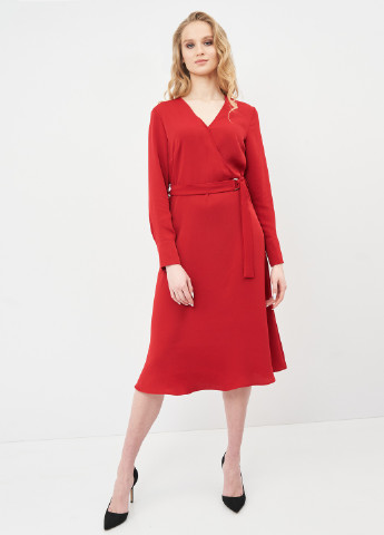 Платье из мягко драпирующейся вискозы с декоративными оборками. Воротник стойка, потайная застежка на пуговицы сверху и длинные пышные рукава со сборкой на плечах. Широкие облегающие манжеты с обтянутыми пуговицами. Шов на талии и легкий клеш книзу. Без подкладки.