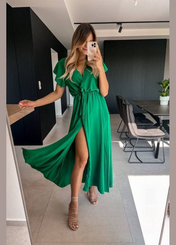 ❗️❗️❗️ПЕРЕД ЗАКАЗОМ ОЗНАКОМТЕСЬ С ЗАМЕРами НИЖЕ❗️❗️❗️ Размер: 42-46(универсал) Длина 140 см. Грудь до 100 см. Это элегантное и комфортное платье изготовлено из ткани креп-жатка, что придает ей легкость и приятную текстуру. Она идеально подходит для создания женственного образа, обеспечивая удобство в течение дня. Особенности: Ткань: Креп-жатка. Талия на резинке: обеспечивает комфортную посадку и позволяет платья идеально сидеть по фигуре. Запах-обманка: Этот элемент дизайна создает эффект запаха, но при этом фиксирован, позволяющий не поправлять платье во время ношения и наслаждаться комфортом. Разрез на ноге: Добавляет образ элегантности и женственности, обеспечивая свободу движений. Фасон: V-образный вырез горловины и короткие рукава-воланы.