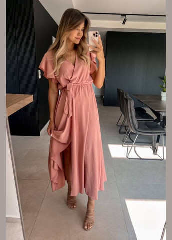 Материал Креп / Цвет Пудровый / Фасон На запах / Длина изделия Миди и ниже колена / Стиль Повседневный