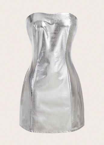 Материал Искусственная кожа / Цвет Серебристый / Фасон Футляр / Длина изделия Мини / Стиль Откровенный