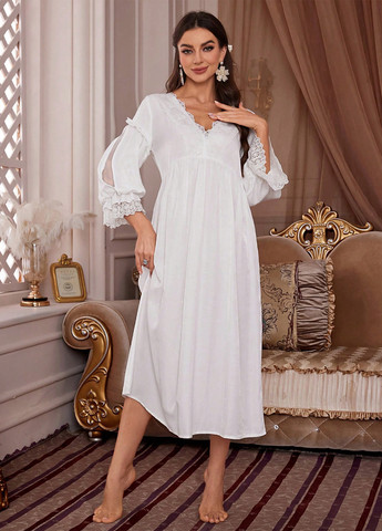 Романтическое платье-рубашка большого размера с поясом в тон, воротничок-небольшая стойка. Застегивается на череду пуговиц спереди на планке, от воротничка до низа. Рукава с удлиненными манжетами, на манжетах по одной пуговице. Верх украшен ажурным кружевом спереди и по спинке. Карманов нет. Пояс/аксессуар входит в комплект. Примерные замеры готового изделия: 50 р-р: длина рубашки 102 см, длина рукава от плечевого шва 62 см, обхват рукава 39 см, ОГ-102 см, ОТ-114 см, OC-120 см. 52 р-р: длина рубашки 102 см, длина рукава от плечевого шва 62 см, обхват рукава 39 см, ОГ-106 см, ОТ-118 см, OC-124 см. 54 р-р: длина рубашки 103 см, длина рукава от плечевого шва 62 см, обхват рукава 40 см, ОГ-110 см, ОТ-122 см, OC-128 см. 56 р-р: длина рубашки 103 см, длина рукава от плечевого шва 62 см, обхват рукава 40 см, ОГ-114 см, ОТ-126 см, OC-132 см. 58 р-р: длина рубашки 104 см, длина рукава от плечевого шва 62 см, обхват рукава 41 см, ОГ-118 см, ОТ-130 см, OC-136 см. 60 р-р: длина рубашки 104 см, длина рукава от плечевого шва 62 см, обхват рукава 41 см, ОГ-122 см, ОТ-134 см, OC-140 см.