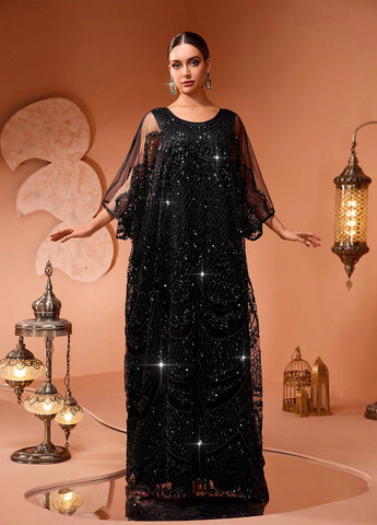 Платье без рукавов «Мэйбл» привлекает яркими деталями, которые не могут оставить равнодушной. Верх платья, выполненный из ткани-стрейч с эффектом люрекса, напоминает гольф без рукавов. Длинная юбка состоит из подъюбника и сетки, расшитой пайетками в виде аппликации. Особой интерес представляет спинка: посредине элегантный разрез и застежка в виде пуговиц. В этом платье от вас будет не оторвать глаз!