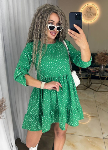 Мини-длина подчеркивает ножки, придавая образу кокетливости и легкости, а мягкий крой позволяет чувствовать себя свободно и непринужденно. Благодаря универсальному дизайну, это платье станет идеальным выбором для летних прогулок, романтических встреч или праздничных событий.