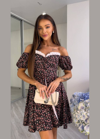 Мини-платье с цветочным принтом и рукавами-фонариками из ткани «кади софт»