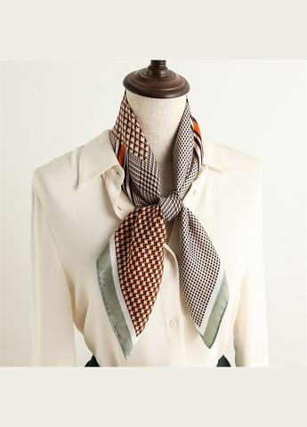 Стильная, эффектная женская косынка. Это важный элемент выразительного женского образа, который не только освежает, привлекает внимание, но и придает обычной повседневной одежде праздничный вид. Благодаря тонкой и нежной ткани ее можно сочетать и с пальто, и с жакетом, и с блузой. Платок – всегда безупречный подарок. Размер: 48х47 см Материал – 100% полиэстер