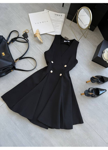 Платье-жилет с акцентными пуговицами – современное сочетание классики и тренда, которое придает образу элегантности и динамики. Модель отличается лаконичным силуэтом и продуманным кроем, что подчеркивает женственность, оставаясь одновременно практичной и универсальной. Особенности модели Двойной ряд декоративных пуговиц создает эффект жакета, придавая изделию изысканный вид. V-образный вырез визуально извлекает силуэт и подходит практически всем типам фигуры. Безрукавный крой делает платье универсальным для теплого времени года и позволяет легко сочетать его с блузами, водолазками или топами. Расклешенная юбка создает легкое движение и придает образу женственности и грациозности. Где носить Идеальный выбор для офиса, деловых встреч, вечерних выходов или стильных прогулок. Легко комбинируется с классическими челноками, босоножками на каблуке или даже массивными ботинками для смелого контраста. Аксессуары в виде ремня, клатча или украшений помогут изменять настроение образа от сдержанного к эффектному. Преимущества Сочетание практичности жилета и женственности платья. Лаконичный дизайн, не выходящий из моды. Универсальная база, которую можно носить как самостоятельно, так и в многослойных образах. Это платье-жилет станет ключевым элементом гардероба, который всегда будет выручать, когда нужно выглядеть стильно, современно и уверенно. Длина 84 см