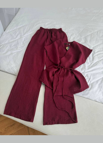 Цвет Бордовый / Фасон Брючный / Стиль Кэжуал / Узор Однотонный / Материал Лен
