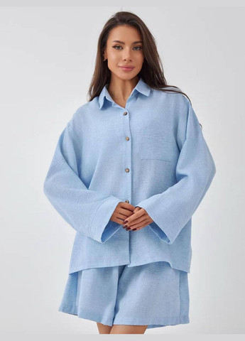 Цвет Голубой / Фасон С шортами, С рубашкой / Стиль Повседневный / Узор Однотонный / Материал Лен