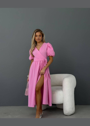 Материал Лен / Цвет Розовый / Фасон На запах / Длина изделия Миди и ниже колена / Стиль Повседневный