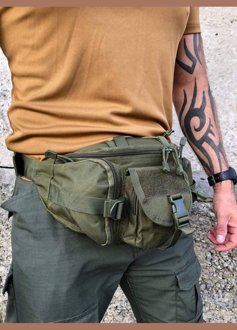 Сумка тактическая поясная предназначена для использования в городских и боевых условиях, а также на рыбалке, охоте, велопрогулках, экстремальных и активных видах спорта. Удобно крепится на пояс, имеет множество отделений. Оснащена системой M.O.L.L.E. для крепления дополнительного оборудования. Благодаря качественному исполнению и отличному пошиву вещи будут в целостности и безопасности. На сумке используется система модульных застежек на липучках, позволяющая прикрепить любую этикетку (именную бирку, лоскут и т.п.). - размеры: 35 х 17 х 10 см - Цвет: масло - объем: около 5 л - Материал: нейлон 800D - система M.O.L.L.E. - система модульных застежек на липучках - поясной ремень регулируется - высококачественная фурнитура
