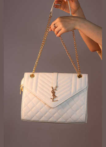 Сумка из лого Yves Saint Laurent реплика 🔗 Размер: 24х14х9 🔗 Материал: Эко кожа Сумка изготовлена с эффектом состаренной эко кожи, имеет два отделения и застегивается на магнитную застежку. Подкладка из текстиля. В основном отделены боковой открытый карманчик. Плечевой ремень – цепочка со вставкой из эко кожи, которую можно носить вытянутой на всю длину или сложенной в два раза. На обороте есть карман, который застегивается на магнитную застежку. Фурнитура белого и антрацитово-серого цвета. Упаковка: брендовая коробка, бумага, наполнитель, наклейка.