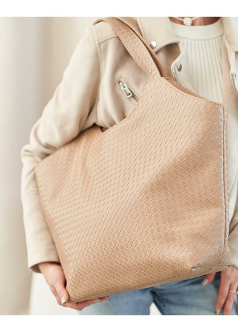 Высота 30 см. Ширина 10 см. Глубина 44 см. Женская сумка 68829 цвет бежевый, из экокожи высокого качества (материал похож на кожу). Сумка открывается при помощи молнии. Внутри на подкладке, имеет два кармана: открытый и на молнии. Снаружи есть карман для мелких предметов. Сумку удобно носить на плече