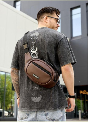 Бананка Sambag Flex цвета шоколад Сумка от компании Sambag дает ощущение оригинальности и неповторимости в стиле. Характеристики классической темно-коричневой сумки через плечо Материал верха: новейшая экокожа повышенного уровня износостойкости (не менее 50 000 циклов по тесту Мертиндейла). Подкладка: материал оксфорд средней плотности, прочный, стойкий к царапинам, легко чистится, нити из него не вылезают. Фурнитура: молнии типа YKK из надёжного пластика. Подтяжки: плечевой ремень из текстиля надежно пришит на планку по спинке. Длина регулируется с помощью фастекса и пластикового регулятора. Функциональность: снаружи спереди сумки один карман Внутри сумки отдельное основное отделение, карман на молнии, карман из сетки Дополнительно имеет карабин для ключей. (через плечо) от 86 см до 160 см: ремень регулируется. При заказе в комментарии укажите необходимую длину ремня, если она отличается от стандартной. Размер: 30*17*10 см.