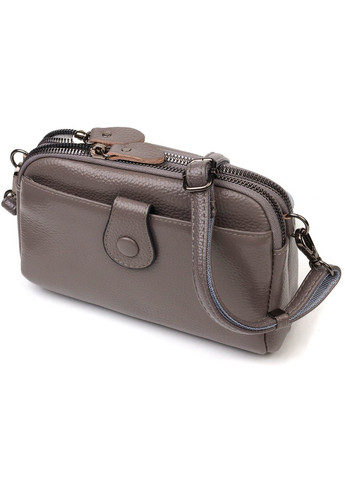 Цвет: серый; Материал: натуральная кожа высокого качества; Размер (ШхВхГ, см): 19х12х7 см; Страна производитель: Китай. Внутри: - два основных отделения на молнии; - карман на молнии внутри; - боковой карман открытого типа внутри; - карман, что закрывается хлястиком на магните на лицевой стороне; - карман на молнии на тыльной стороне; - съемный кистевой ремень; - съемный плечевой ремень. Интересная небольшая сумка-клатч из натуральной мягкой кожи высокого качества. Изделие очень удобное, можно носить на плече, через плечо, под рукой и на кисти. Модель дополнена фурнитурой цвета темного серебра. Аксессуар имеет два основных отделения на молниях, в которых два кармашки - на молнии и один открытого типа, также снаружи находятся два кармана. В комплекте к сумке идет съемный плечевой ремень и съемный кистевой ремень. Закрывается модель на молнию.