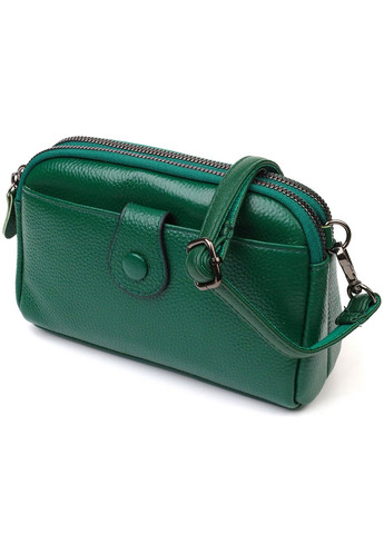 Цвет: зеленый; Материал: натуральная кожа высокого качества; Размер (ШхВхГ, см): 19х12х7 см; Страна производитель: Китай. Внутри: - два основных отделения на молнии; - карман на молнии внутри; - боковой карман открытого типа внутри; - карман, что закрывается хлястиком на магните на лицевой стороне; - карман на молнии на тыльной стороне; - съемный кистевой ремень; - съемный плечевой ремень. Превосходная небольшая сумка-клатч из натуральной мягкой кожи высокого качества. Изделие очень удобное, можно носить на плече, через плечо, под рукой и на кисти. Модель дополнена фурнитурой цвета темного серебра. Аксессуар имеет два основных отделения на молниях, в которых два кармашки - на молнии и один открытого типа, также снаружи находятся два кармана. В комплекте к сумке идет съемный плечевой ремень и съемный кистевой ремень. Закрывается модель на молнию.