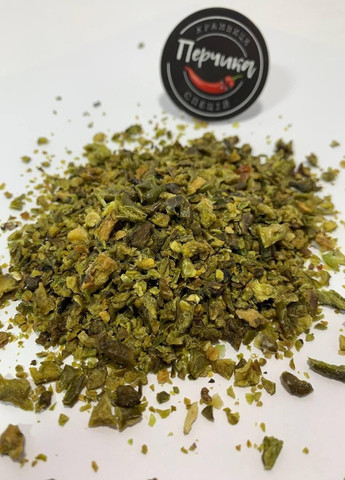 Зеленая паприка кусочками - это солнечная и ароматная специя, приготовленная из зеленых плодов сладкого болгарского перца. Зеленая паприка кусочками обладает рядом характерных свойств: Свежий и Яркий Вкус: Зеленая паприка имеет свежий, нежный и сладкий вкус с легкой хрустящей текстурой. Ее вкус напоминает летние овощи и добавляет в блюда нотки свежести. Яркий Цвет: Зеленая паприка придает блюдам красочные зеленые и свежие оттенки, что делает их более аппетитными. Аромат: Специя обладает приятным ароматом, который наполняет кухню при приготовлении. Применение в Кулинарии Зеленая паприка кусочками нашла свое применение в разнообразных блюдах и кухнях. Вот несколько способов ее использования: Салаты: Зеленая паприка идеально подходит для приготовления свежих овощных салатов. Ее хрустящая текстура и яркий вкус делают салаты более интересными. Гарниры: Добавьте зеленую паприку кусочками в картофельное пюре, грибы или другие гарниры, чтобы придать им яркий цвет и нотки свежести. Супы и рагу: Зеленая паприка отлично сочетается с супами, рагу и тушеными блюдами, придавая им вкус и аромат. Запеканки и гриль: Используйте паприку для приготовления запеканок и блюд на гриле, чтобы придать им характерный вкус и текстуру. Тако и фахитас: Зеленая паприка часто используется в мексиканской кухне для приготовления тако и фахитас.