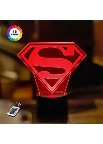 3D ночник Знак Супермена (УВЕЛИЧЕННОЕ ИЗОБРАЖЕНИЕ) подарочная упаковка + 16 цветов + пульт ДУ + сетевой адаптер+ батарейки (3ААА) 3DTOYSLAMP 3D стветильники-ночникиторговой марки3DTOYSLAMPс эффектом трехмерного изображения станут отличным дополнением любого интерьера. Простое управление.Цвет свечения меняется нажатием на кнопку на корпусе, а так же при помощи пульта ДУ. Есть режим автоматического перекючения цветов и возможность регулировать яркость подсветки ночника. Безопасность.Светильник ненагревается, не имеет запаха. Работа от батареек и сети.3D светильник Знак Супермена может работать от сети, компьютера или power-банка, а так же от батареек (микропальчиковые 3 шт)ИДУТ В КОМПЛЕКТЕ. Управление с помощью пульта: Направьте пульт в сторону базы. Нажмите ON для включения, OFF для выключения лампы. Яркость свечения регулируется с помощью кнопок со стрелочками вверх/вниз. Для выбора цвета свечения нажмите на кнопку соответствующего цвета. FLASH смена цвета по порядку. STROBE смена цвета в случайном порядке. FADE цвета меняются с эффектом затухания. SMOOTH плавная смена цвета. Вам понравилось несколько дизайнов 3D ночников и не знаете какой выбрать?Возможно вашему ребенку понравился другой мультяшный герой или Вы изменили интерьер в вашем помещении? Не обязательно покупать новый ночник! Уникальной особеностью 3D ночников является то, что изображенияв нем съемные. В нашем магазине представлен большой ассортимент сменных пластин.Достаточно заказать у нас дополнительное изображение - и у Вас новый 3D ночник! характеристики: Цвет света:16цветов свечения Материал:акрил, пластик Размер:20х18см Мощность:5 Вт Комплектация:подарочная упаковка,корпус, акриловая пластина ( УВЕЛИЧЕНОЕ ИЗОБРАЖЕНИЕ), пульт ДУ, USB- кабель 1.5 м , сетевой адаптер,батарейки (3ААА),инструкция на украинском языке Гарантия:12 месяцев Ресурс лампы: до 50 000 часов работы МАТЕРИАЛЫ НЕ СОДЕРЖАТ ВРЕДНЫх ВЕЩЕСТВ! НЕ НАГРЕВАЕТСЯ! БЕЗОПАСНО ДЛЯ ДЕТЕЙ! Вся продукцияторговой марки3DTOYSLAMPпрошла тщательную проверку на качество!
