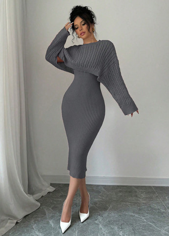 Платье-свитер – стиль осень/зима. Это вязаное платье-свитер обеспечивает красивую посадку. Оно имеет V-образный вырез и высокую талию. Платье имеет рукава «летучая мышь» и карандашный подол. Слегка эластичная ткань обеспечивает комфорт. Трикотаж выполнен в рубчик однотонного цвета.