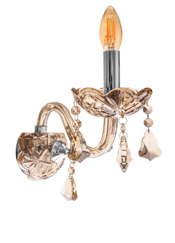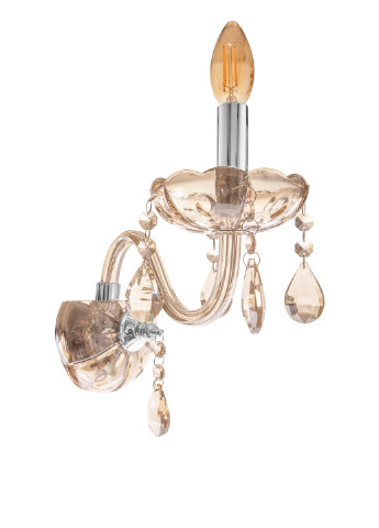 классическое бра, наполненное духом былых эпох, поведает вам о тайнах прошлого и выигрышно подчеркнет дизайн интерьера спальни, гостиной или прихожей в вашей городской квартире или загородном доме. Бра изготовлено из металла и стекла. Его конструкция состоит из полукруглого стеклянного основания, к которому с помощью фигурного держателя прикреплен патрон для лампы, помещенный в стеклянную тарелочку. Внешне конструкция данного светильника напоминает старинный канделябр, вот только вместо восковой свечи источником света служит одна электрическая лампочка с цоколем Е14 мощностью 40 Вт. Светильник может похвастаться богатым дизайном. Украшен он стеклянными подвесками с гранеными камушками цвета шампань. Данное бра сделает атмосферу в доме уютной, праздничной. Так, что приглашайте гостей и устраивайте душевное чаепитие. Ширина: 120 мм, высота: 230 мм