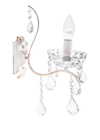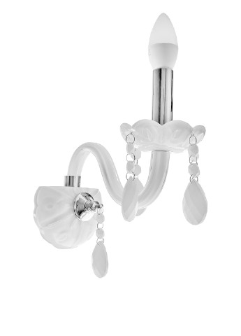 классическое бра, наполненное духом былых эпох, поведает вам о тайнах прошлого и выигрышно подчеркнет дизайн интерьера спальни, гостиной или прихожей в вашей городской квартире или загородном доме. Бра изготовлено из металла и стекла. Его конструкция состоит из полукруглого стеклянного основания, к которому с помощью фигурного держателя прикреплен патрон для лампы, помещенный в стеклянную тарелочку. Внешне конструкция данного светильника напоминает старинный канделябр, вот только вместо восковой свечи источником света служит одна электрическая лампочка с цоколем Е14 мощностью 40 Вт. Светильник может похвастаться богатым дизайном. Украшен он стеклянными подвесками с гранеными камушками белого цвета. Данное бра сделает атмосферу в доме уютной, праздничной. Так, что приглашайте гостей и устраивайте душевное чаепитие. Ширина: 120 мм, высота: 200 мм
